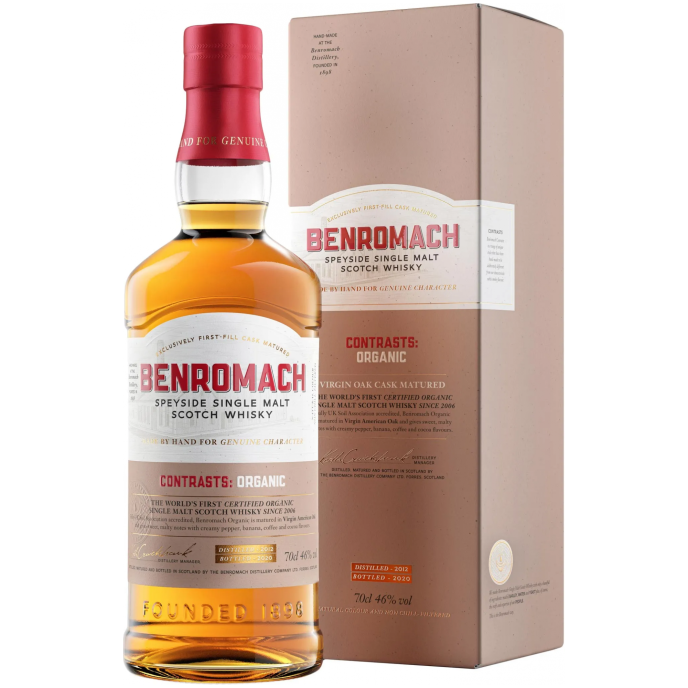 This special edition of Benromach Organic has been made using the finest Scottish organic barley, dried using peat smoke to produce a single malt with a distinctly smoky character. Matured in casks made from virgin American oak this fresh, vibrant single malt whisky is smooth and creamy. Light & delicate fruity aromas with hints of soft, fresh fruits and a subtle smoky edge. Mouth warming with a distinctive peaty note present, hints of charred oak and a sweet, cream toffee finish.